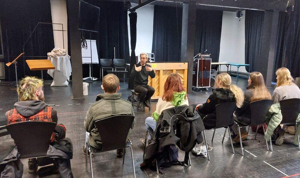Im Anschluss gab es wieder die Gelegenheit zum Austausch mit Ronny Scholz. Besonders nach der Orchesterhauptprobe war die Begeisterung spürbar: Die Schüler*innen staunten darüber und viele waren beeindruckt von der Emotionalität und Energie des Stückes. Eine Schülerin meinte: „Das war das beste Stück, was ich je gesehen habe und ich habe schon viel gesehen.“